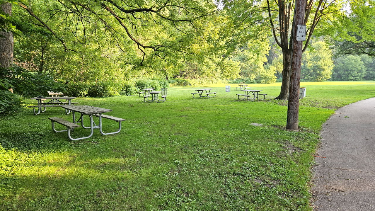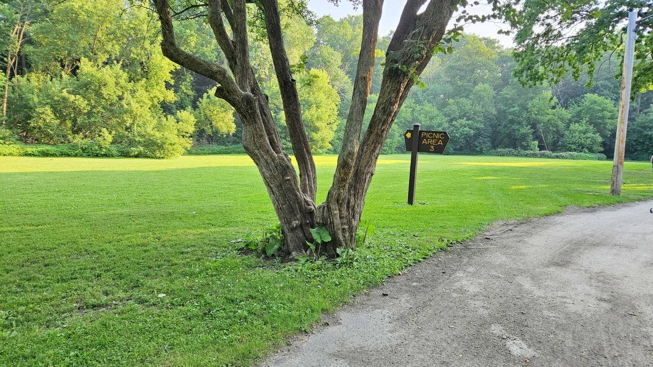 Warning: we don't recommend using the official address of Jacobus Park as Google Maps shows the location in the middle of the Menomonee River! Instead, we recommend you use the address of 6027 Menomonee Dr, Wauwatosa. This is the address of a home, but it sits right next to the entrance to Jacobus Park that will take you quickly to Picnic Area 3. Parking for this venue is on Menomonee Drive.